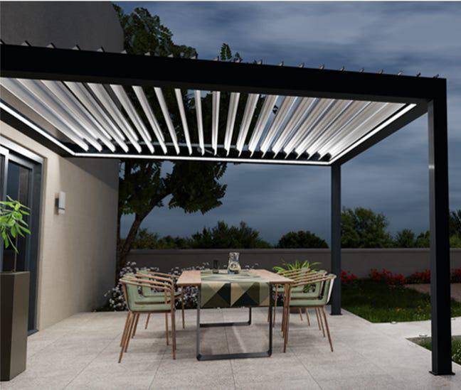 Grâce à sa structure robuste et à ses fonctionnalités pratiques, cette pergola offre à la fois confort et esthétisme. En plus de protéger des rayons UV en journée, elle résiste aux intempéries pour permettre une utilisation prolongée tout au long de l'année.