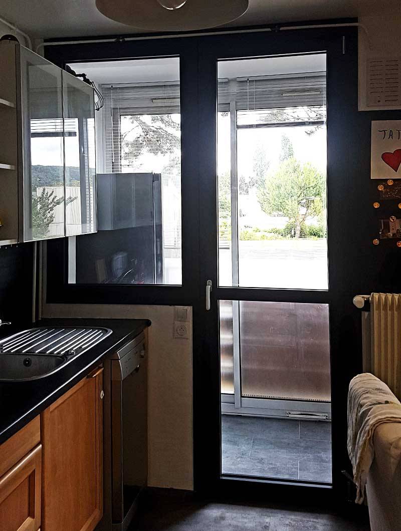 Pour la propriétaire de cet appartement de Franconville, le changement de la porte fenêtre de sa cuisine était prioritaire. Le simple vitrage de l'ancienne porte fenêtre occasionnait de la condensation due au choc thermique et les infiltrations d'air représentaient un véritable inconfort.